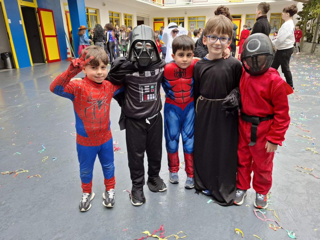 Σήμερα, Πέμπτη 27 Φλεβάρη 2025, στο σχολείο μας πραγματοποιήθηκε η καθιερωμένη αποκριάτικη γιορτή στην οποία όλα τα παιδιά είχαν ντυθεί μασκαράδες με υπέροχες στολές, ενώ δεν έλειψε και το παραδοσιακό γαϊτανάκι!