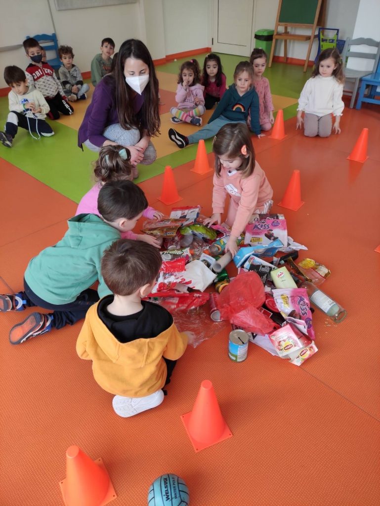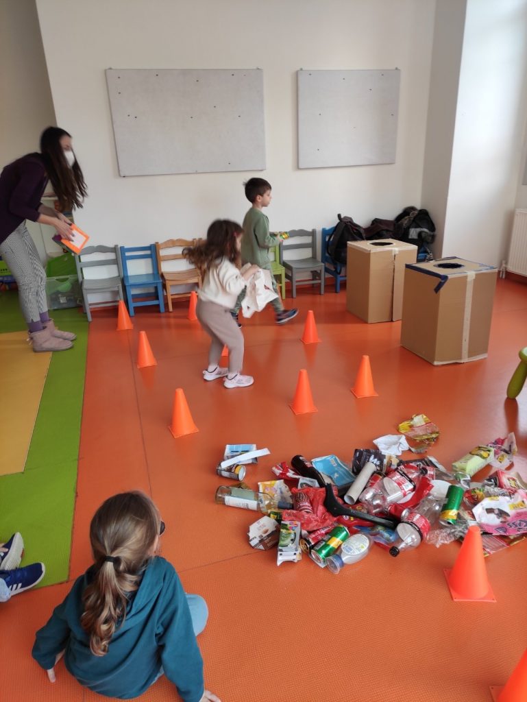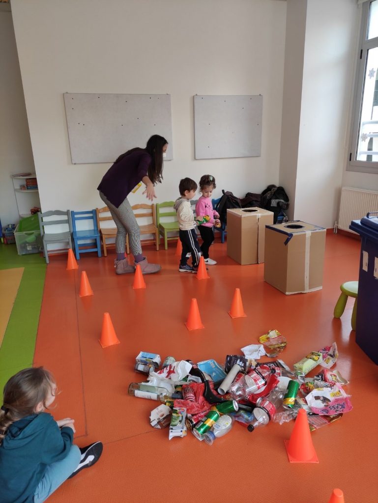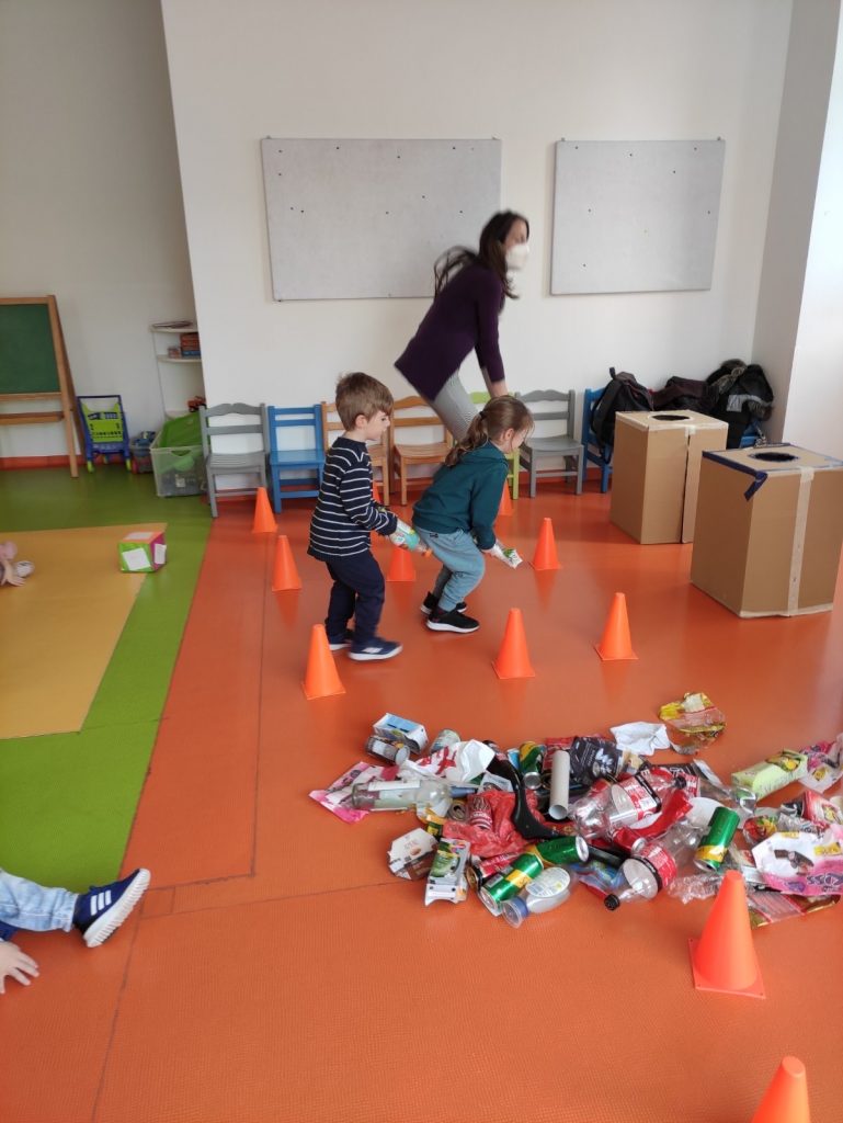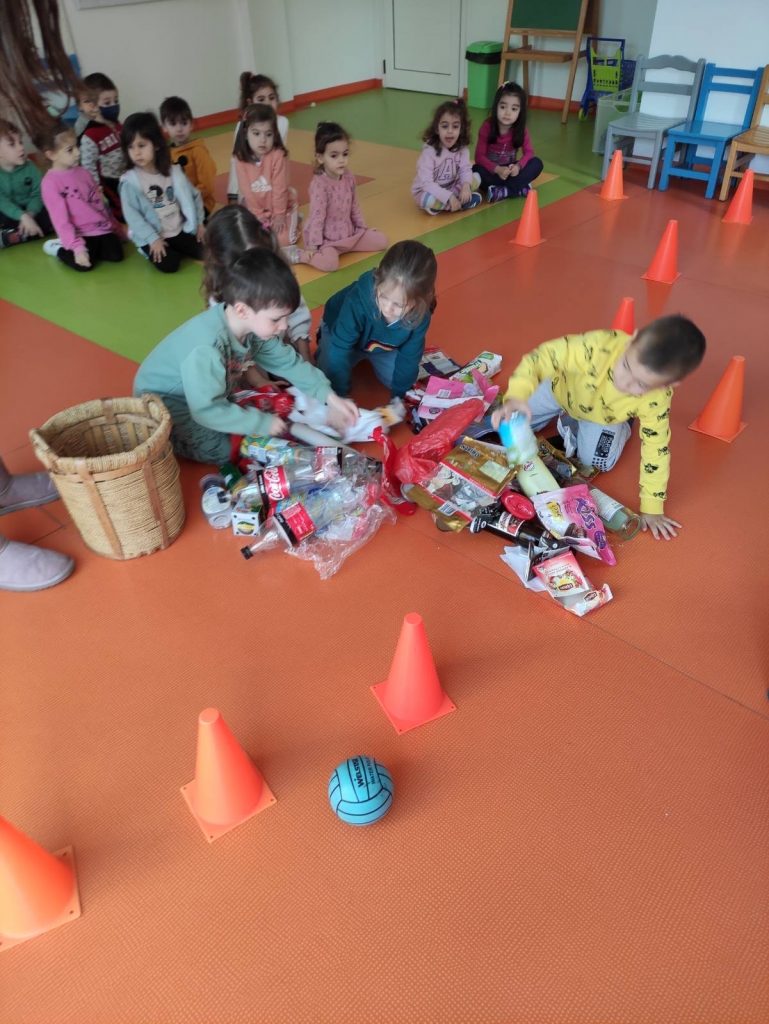 Σήμερα, Τετάρτη 18/1/2023 υποδέχτηκαμε στο σχολείο μας την θεατρική ομάδα Τρελό πατούσες σε μια βιωματική παράσταση για την ανακύκλωση. Στην αρχή γνωριστήκαμε με τον κύριο καδούλη και μάθαμε τι σκουπιδάκια του αρέσει να τρώει. Στη συνέχεια χωριστήκαμε σε ομαδούλες και ταξινομήσαμε τα σκουπιδάκια ανάλογα με το υλικό τους, αλουμίνιο, γυαλί, χαρτί και πλαστικό. Τοποθετήσαμε τα υλικά σαν ζωάκια στους κάδους ανακύκλωσης και τελειώνοντας απολαύσαμε το χορό της κυρίας πλαστικούλας, του κυρίου γυαλάκια, του αλουμινούλη και του χαρτάκια.
