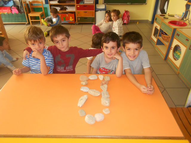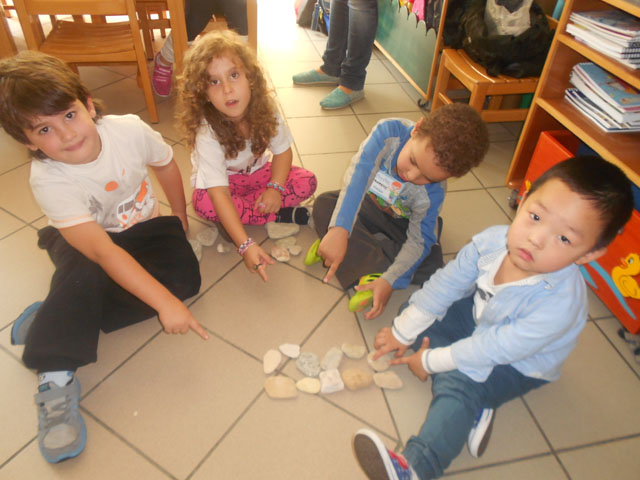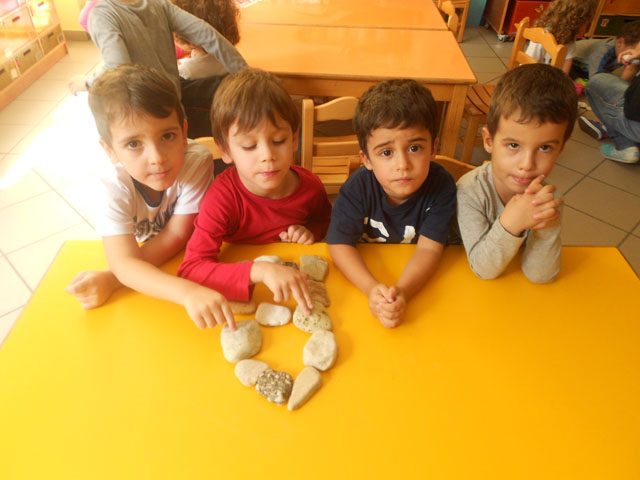 Μιά άσκηση – παιχνίδι που κάναμε σήμερα Τετάρτη 15 Οκτωβρίου με τα παιδιά του Ν1α’ (σε ομάδες) ήταν να “χτίσουμε το γράμμα Β,β” με βότσαλα από την παραλία. Με τις πετρούλες  που συγκέντρωσα, προέτρεψα τα παιδιά να σχηματίσουν το γράμμα Β,β που διδάχτηκαν. Προσπαθήσαμε η φορά σχηματισμού να είναι ορθή για να εσωτερικευτεί αποτελεσματικά ο σχηματισμός του γράμματος.