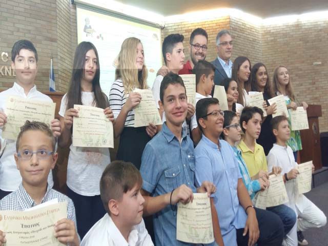 Το Δ.Σ. της Ελληνικής Μαθηματικής Εταιρείας διοργάνωσε την τελετή απονομής βραβείων του 10ου Διαγωνισμού «Μαθηματικά και Παιχνίδι» για μαθητές της Ε΄ τάξης και ΣΤ΄ Δημοτικού των σχολείων της Α΄ Διεύθυνσης Πρωτοβάθμιας Εκπαίδευσης Αθήνας. Η βράβευση των μαθητών έγινε το Σάββατο 1 Οκτωβρίου 2016, στις 9.00 π.μ. στην Αίθουσα Τελετών του Εθνικού Μετσοβίου Πολυτεχνείου. Οι μαθητές του σχολείου μας που βραβεύτηκαν είναι :