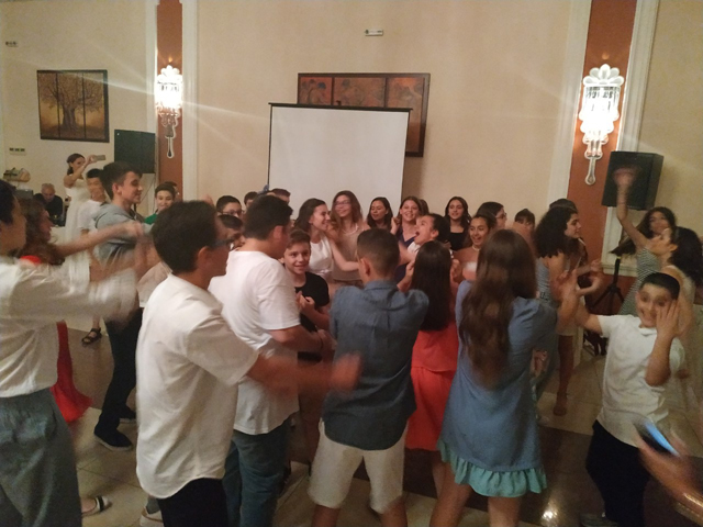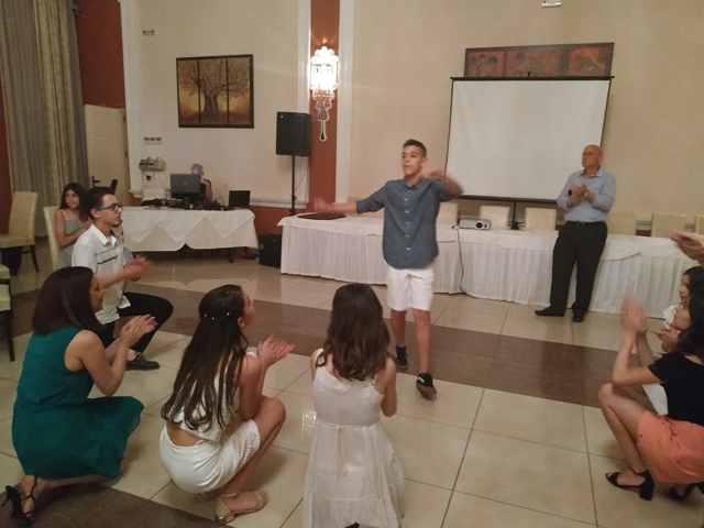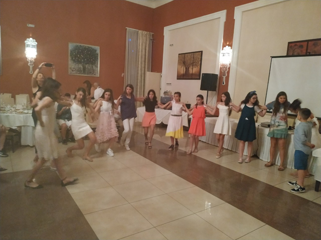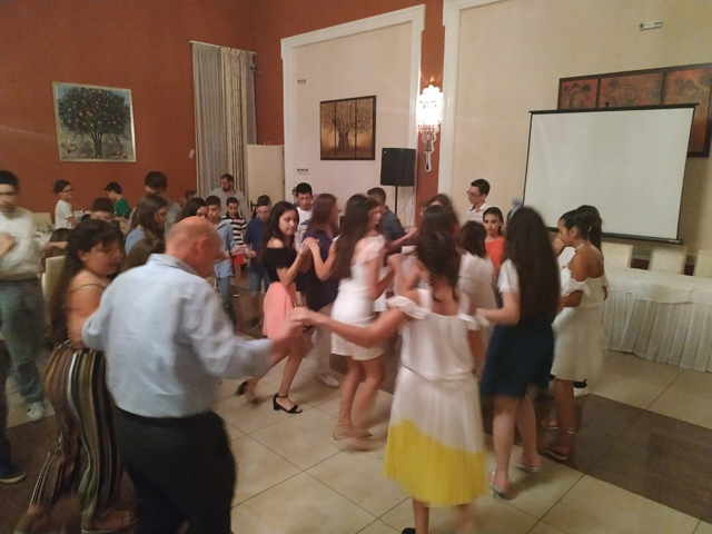 Εκεί φάγαμε, μιλήσαμε μεταξύ μας και έπειτα άρχισε το γλέντι! Χορέψαμε , τραγουδήσαμε και είδαμε όλους τους συμμετέχοντες να ξεδιπλώνουν το χορευτικό τους ταλέντο! Έπειτα λάβαμε τα απολυτήριά μας! Ήταν μια υπέροχη και αλησμόνητη βραδιά!!!