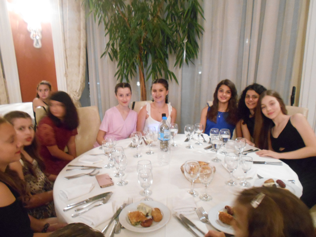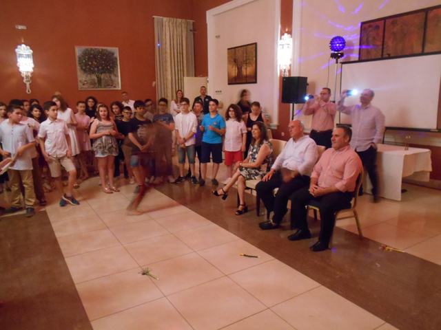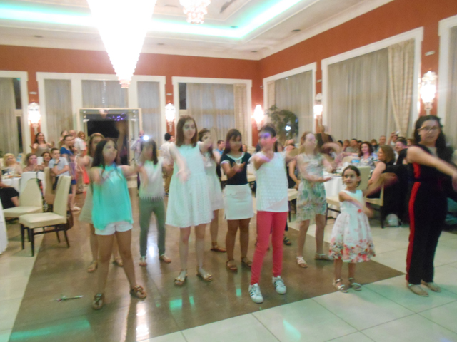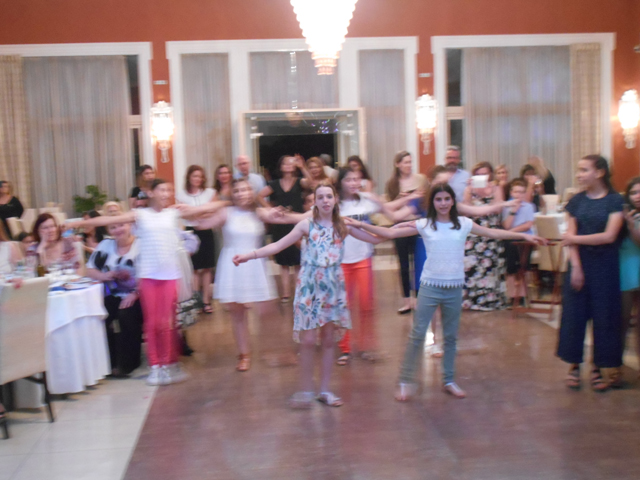 Εκεί φάγαμε, μιλήσαμε μεταξύ μας και έπειτα άρχισε το γλέντι! Χορέψαμε , τραγουδήσαμε και είδαμε όλους τους συμμετέχοντες να ξεδιπλώνουν το χορευτικό τους ταλέντο! Έπειτα λάβαμε τα απολυτήριά μας! Ήταν μια υπέροχη και αλησμόνητη βραδιά!!!