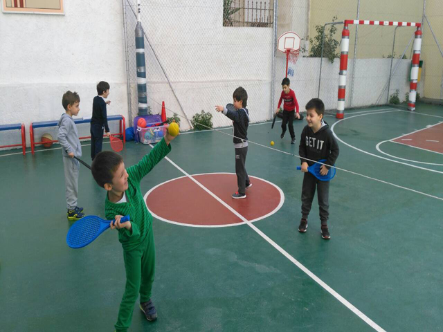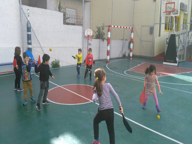 Σήμερα, Τρίτη 28 Φεβρουαρίου 2017, τα δύο τμήματα του νηπιαγωγείου στην ώρα της γυμναστικής έπαιξαν τένις.