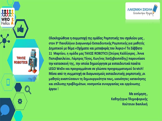 ΔΙΑΓΩΝΙΣΜΟΣ ΡΟΜΠΟΤΙΚΗΣ 2016-2017