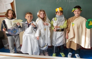 Σήμερα 22/11/2013 στην τάξη μας , δραματοποιήσαμε ένα συμβούλιο των θεών. Συμμετείχαν ο Δίας , αρχηγός των θεών, η Ήρα , ο Διόνυσος, ο Ποσειδώνας, ο Ήφαιστος και ο Άρης. Προσπαθούσαν να αποφασίσουν για την τιμωρία των ανθρώπων. Όσοι συμμετείχαμε φτιάξαμε μόνοι μας τις στολές μας και γράψαμε τα λόγια μας. Ευχαριστηθήκαμε ιδιαίτερα αυτή την εμπειρία!