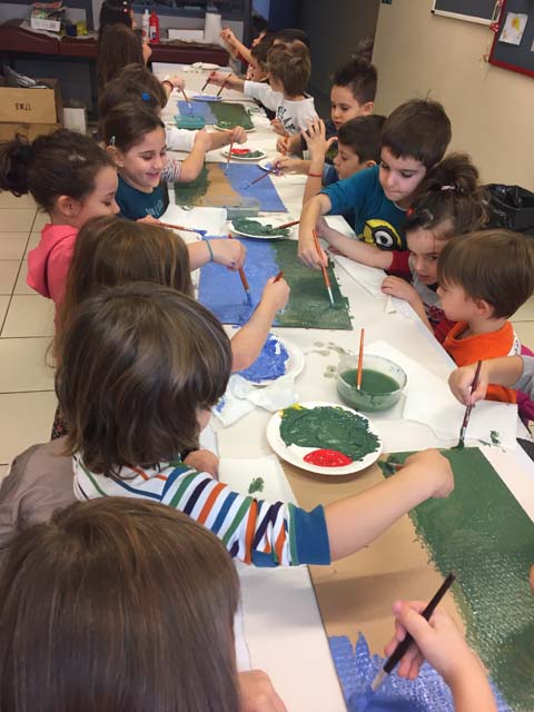Οι μικροί μαθητές πειραματίστηκαν με ποικίλα υλικά και επινόησαν τις δικές τους τεχνικές για να σχεδιάσουν και να ζωγραφίσουν με τη βοήθεια της δασκάλας εικαστικών του σχολείου και των νηπιαγωγών.