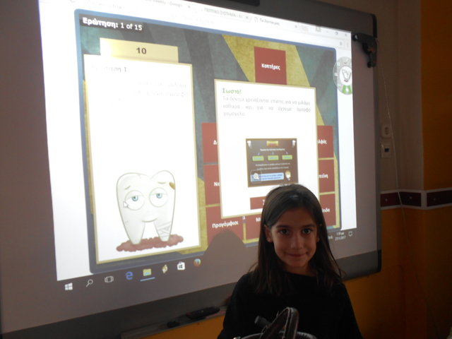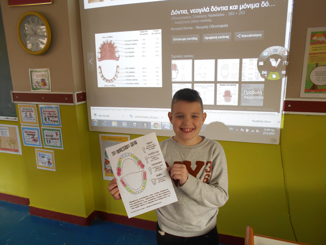 Αφού μάθαμε την ονομασία των δοντιών μας και συμπληρώσαμε σχετικά φύλλα εργασίας , συμμετείχαμε σε διαδραστικές δραστηριότητες μέσω των tablet του σχολείου μας. Έπειτα, επισκεφθήκαμε το χώρο του Εργαστηρίου Εικαστικών , όπου κατασκευάσαμε ομοιώματα κάτω γνάθων. Ήταν μια υπέροχη βιωματική δραστηριότητα, από την οποία αποκομίσαμε χρήσιμες γνώσεις!