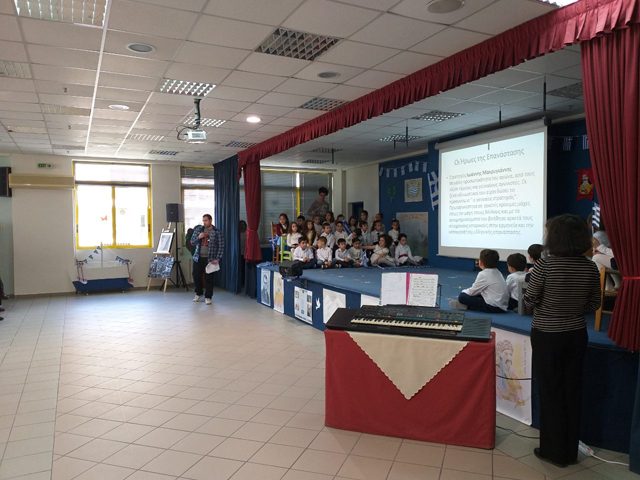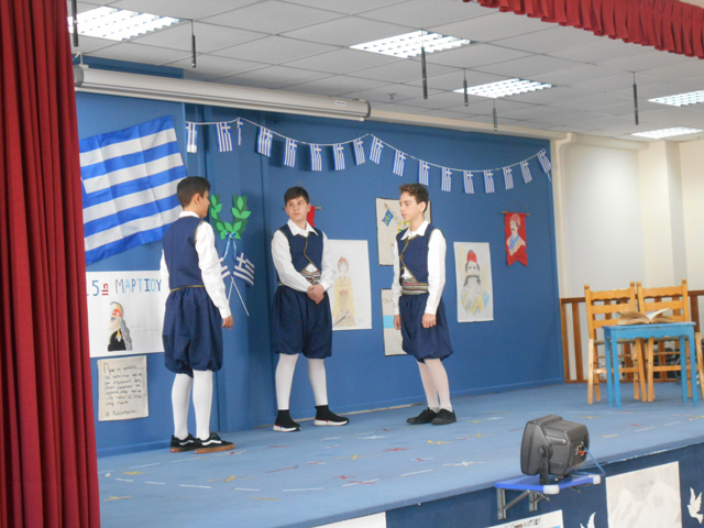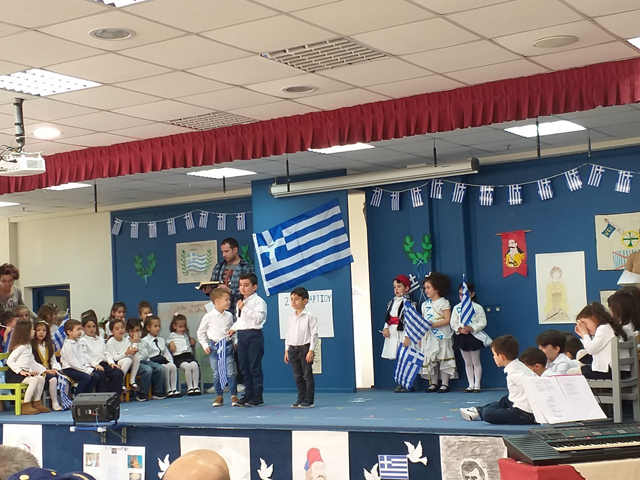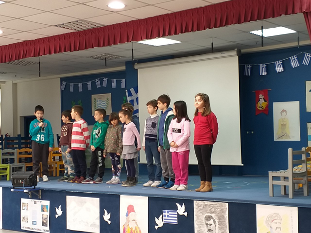 Επίσης, στις 21 Μαρτίου, πραγματοποιήθηκε εορταστική εκδήλωση με αφορμή την εθνική επέτειο της 25ης Μαρτίου 1821 από τους μαθητές των μικρότερων τάξεων και των τμημάτων του νηπιαγωγείου. Τα παιδιά, παρουσίασαν, στο θέατρο του σχολείου μας, στους γονείς θεατρικά δρώμενα, απήγγειλαν τα ποιήματά τους, τραγούδησαν με τις μελωδικές φωνές τους και χόρεψαν στο ρυθμό παραδοσιακών τραγουδιών.