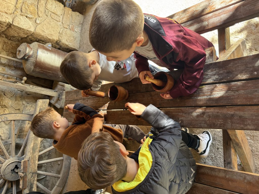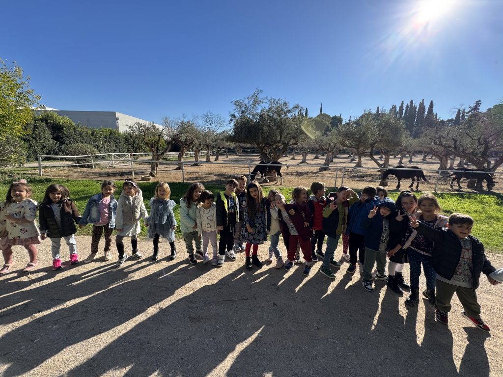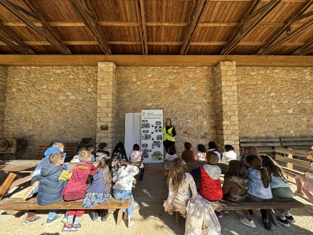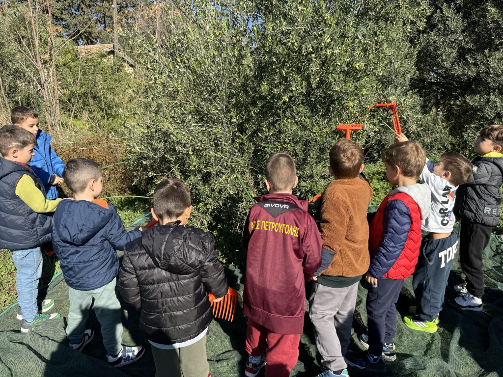 Τα παιδιά περπάτησαν στα μονοπάτια, παρατήρησαν τα ζώα του κτήματος και συμμετείχαν σε εκπαιδευτικές δραστηριότητες γύρω από την ελιά, το δέντρο–σύμβολο της μεσογειακής διατροφής.