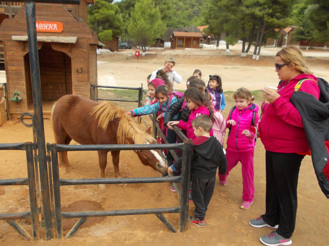 Περάσαμε καταπληκτικά !  Ήρθαμε σε επαφή με πολλά ζωάκια όπως παγώνια , πρόβατα ,ελάφια , κατσίκες και άλλα πολλά. Επίσης, χαϊδέψαμε πόνυ, τα οποία είχαν ονόματα Ολύμπιων θεών. Παίξαμε , φάγαμε και διασκεδάσαμε με την καρδιά μας. Πολύ θα θέλαμε να ξαναπάμε σύντομα!