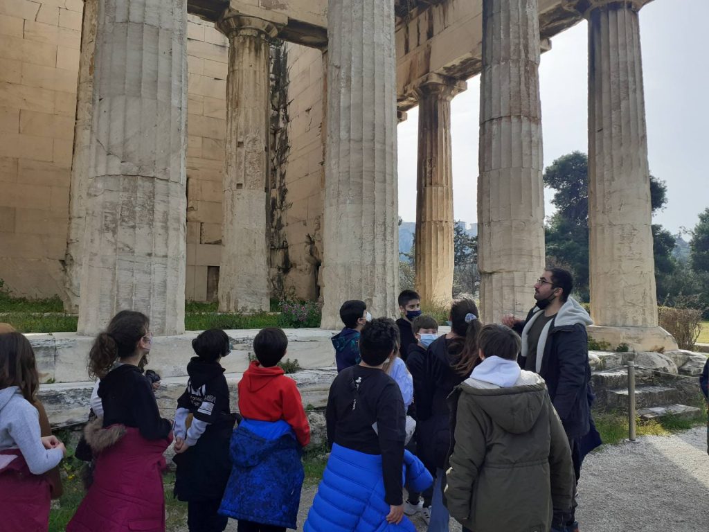 Σήμερα, Τετάρτη 16 Μαρτίου 2022, επισκεφθήκαμε την αρχαία ρωμαϊκή αγορά. Αφού, αποβιβαστήκαμε από το λεωφορείο είδαμε μπροστά μας τον ιερό λόφο της Ακρόπολης. Περπατήσαμε και σε λίγο περάσαμε την είσοδο του αρχαιολογικού χώρου. Στην αρχή είδαμε τον αγωγό που έδινε νερό στα λουτρά. Μετά ανεβήκαμε τα σκαλιά και είδαμε από κοντά το ναό του θεού Ήφαιστου. Ήταν δωρικού ρυθμού. Ύστερα είδαμε μια κολόνα κορινθιακού ρυθμού και τη Βιβλιοθήκη του Αδριανού. Ήταν μια υπέροχη εμπειρία που δε θα ξεχάσω ποτέ!