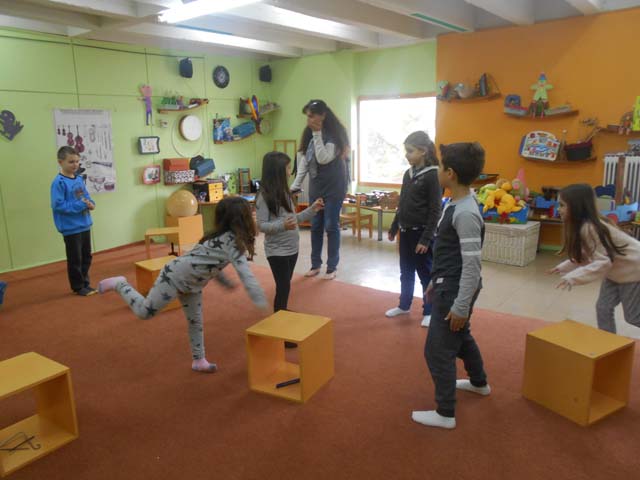 Μόλις φτάσαμε στον χώρο , οι μουσικοπαιδαγωγοί μάς χώρισαν σε ομάδες προκειμένου να συμμετάσχουμε σε τρία διαφορετικά εργαστήρια. Στο εργαστήρι εικαστικών φτιάξαμε μια πόλη χρησιμοποιώντας απλά υλικά, ενώ στο εργαστήρι της κίνησης παίξαμε ένα πολύ ενδιαφέρον μουσικοκινητικό παιχνίδι. Τέλος, επισκεφθήκαμε το εργαστήρι της Μουσικής. Εκεί σε έναν διαμορφωμένο χώρο ήρθαμε σε επαφή με διάφορα μουσικά όργανα. Περάσαμε υπέροχα μιας και όλες οι δραστηριότητες ήταν βιωματικές.