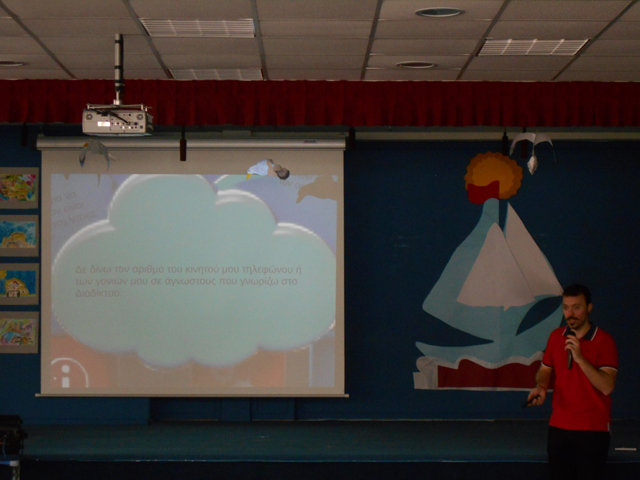 Μας ενημέρωσαν για το πώς πρέπει να πλοηγούμαστε στο διαδίκτυο, είτε μέσα από υπολογιστή, είτε από κινητά και tablet και μας προειδοποίησαν για τα social media (facebook, instagram, twitter κτλ.) και τους κινδύνους που κρύβουν, ιδιαίτερα για τα παιδιά αλλά και για τους γονείς. Απάντησαν σε ερωτήσεις των μαθητών μας και στη συνέχεια μοίρασαν ενημερωτικό υλικό το οποίο μπορείτε να βρείτε και στην ηλεκτρονική διεύθυνση http://www.cyberkid.gov.gr/