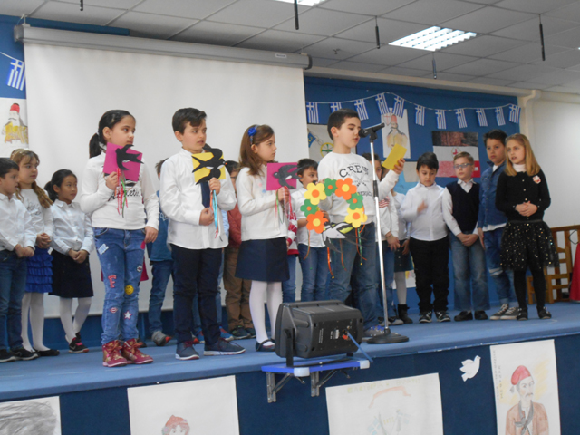 Με ποιήματα , θεατρικά δρώμενα και τραγούδια από τη χορωδία και μέσα σε κλίμα ενότητας και εθνικής υπερηφάνειας που κατέκλυσε όλους τους παρευρισκόμενους. Ευχόμαστε χρόνια πολλά σε όλους τους μαθητές και τους γονείς των εκπαιδευτηρίων.