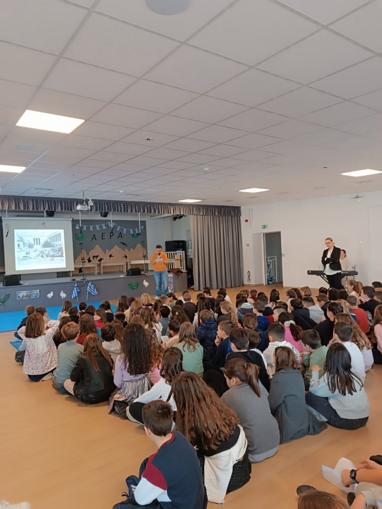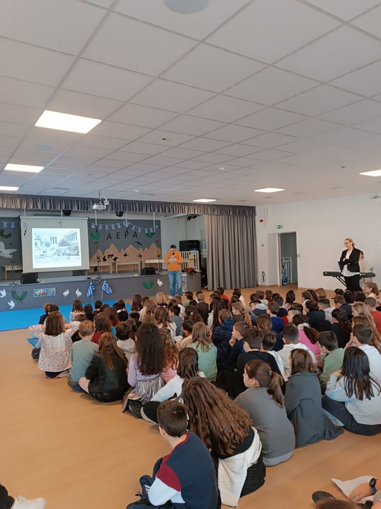 Σήμερα Δευτέρα 17 Νοεμβρίου 2025 , στην αίθουσα εκδηλώσεων του σχολείου μας, μιλήσαμε για το χρονικό της εξέγερσης του Πολυτεχνείου και τραγουδήσαμε διάφορα επετειακά τραγούδια.