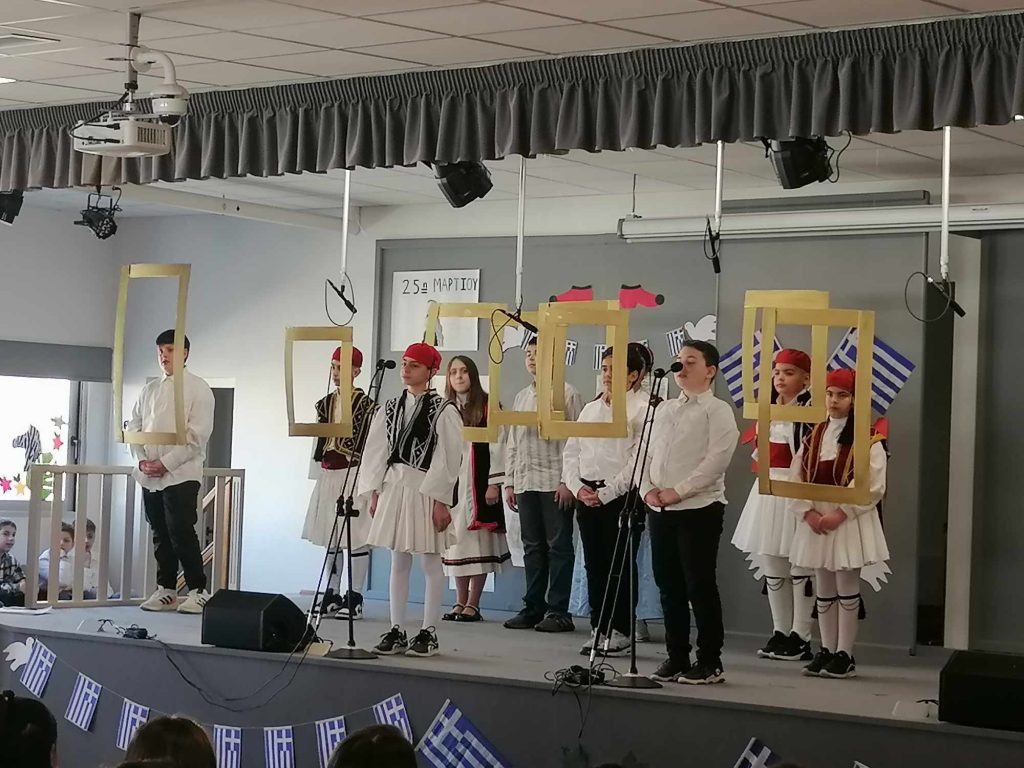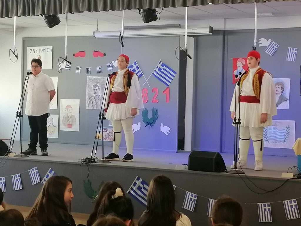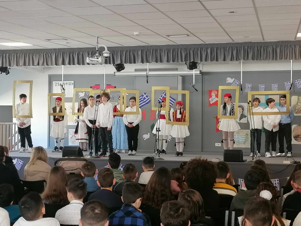 Σήμερα, Παρασκευή 22 Μαρτίου 2024, πραγματοποιήθηκαν εορταστικές εκδηλώσεις για την επέτειο της 25ης Μαρτίου 1821 στο θέατρο του σχολείου μας. Οι μαθητές τόσο του Δημοτικού όσο και του Νηπιαγωγείου μίλησαν για αυτήν τη σημαντική ημέρα, είπαν τα ποιήματά τους και οι μαθητές της Στ’ μας παρουσίασαν δύο θεατρικά, χορούς και τραγούδια.