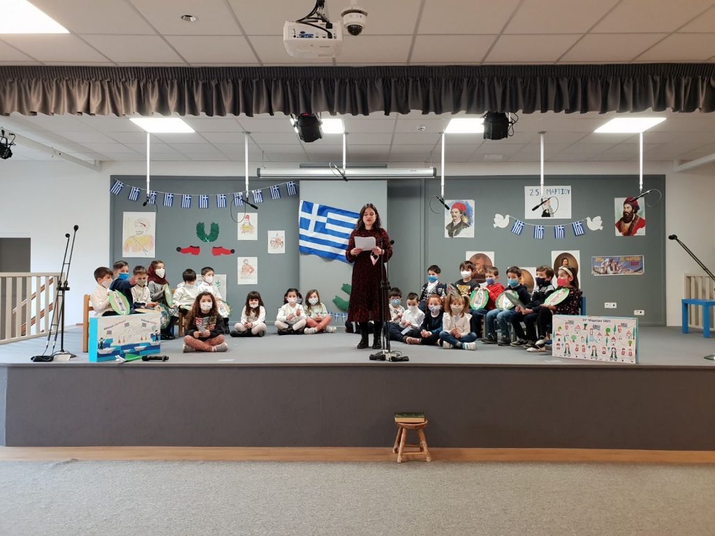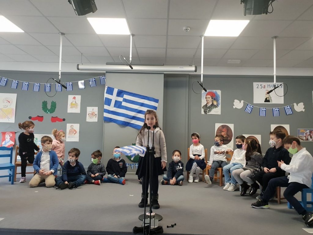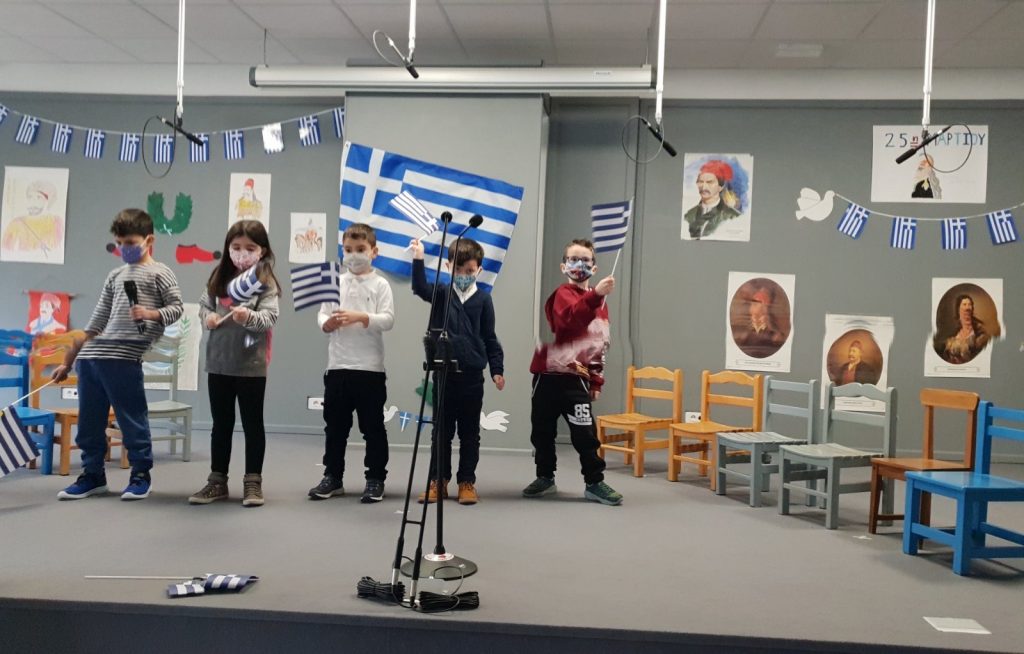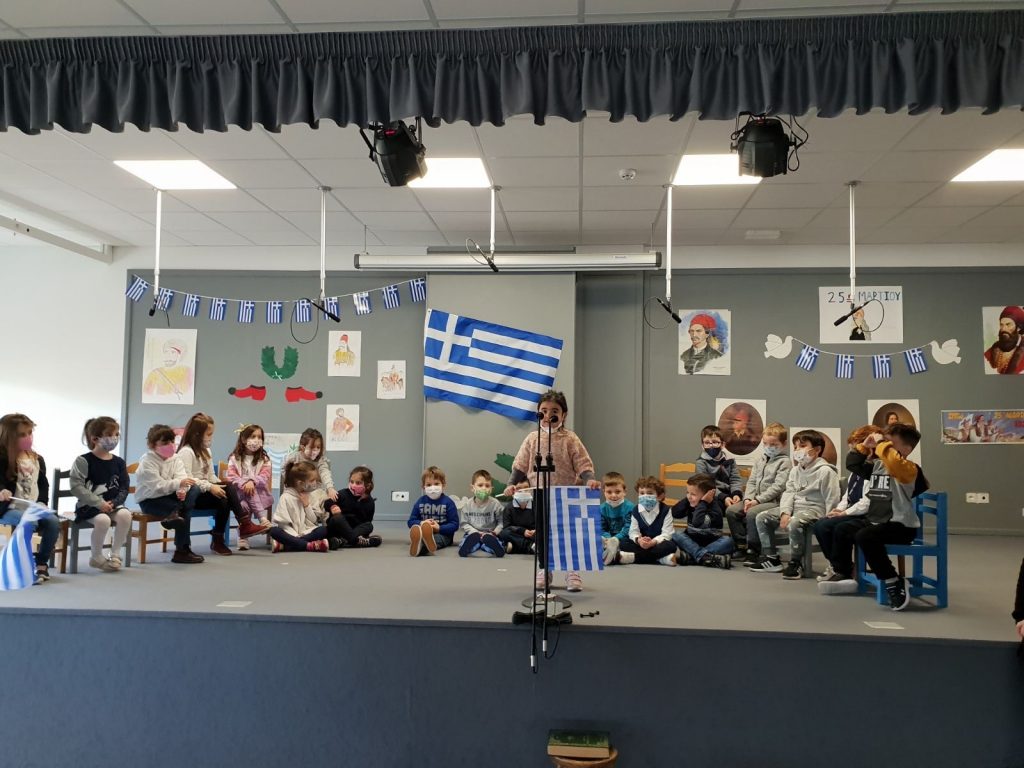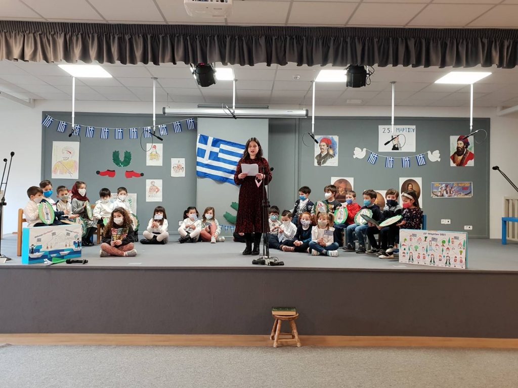 Σήμερα, Πέμπτη 24 Μαρτίου 2022, πραγματοποιήθηκαν εορταστικές εκδηλώσεις για την επέτειο της 25ης Μαρτίου 1821. Οι δάσκαλοι μίλησαν με τους μαθητές τόσο του Δημοτικού όσο και του Νηπιαγωγείου για την σημαντική αυτή ημέρα, και στη συνέχεια τραγούδησαν και είπαν τα ποιήματά τους.