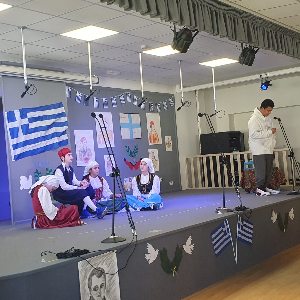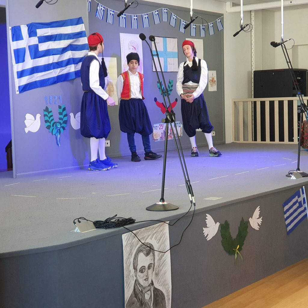 Σήμερα, Παρασκευή 24 Μαρτίου 2023, πραγματοποιήθηκαν εορταστικές εκδηλώσεις για την επέτειο της 25ης Μαρτίου 1821. Οι δάσκαλοι μίλησαν με τους μαθητές τόσο του Δημοτικού όσο και του Νηπιαγωγείου για την σημαντική αυτή ημέρα, είπαν τα ποιήματά τους και οι μαθητές της Στ’ μας παρουσίασαν στο θέατρό μας ένα θεατρικό.
