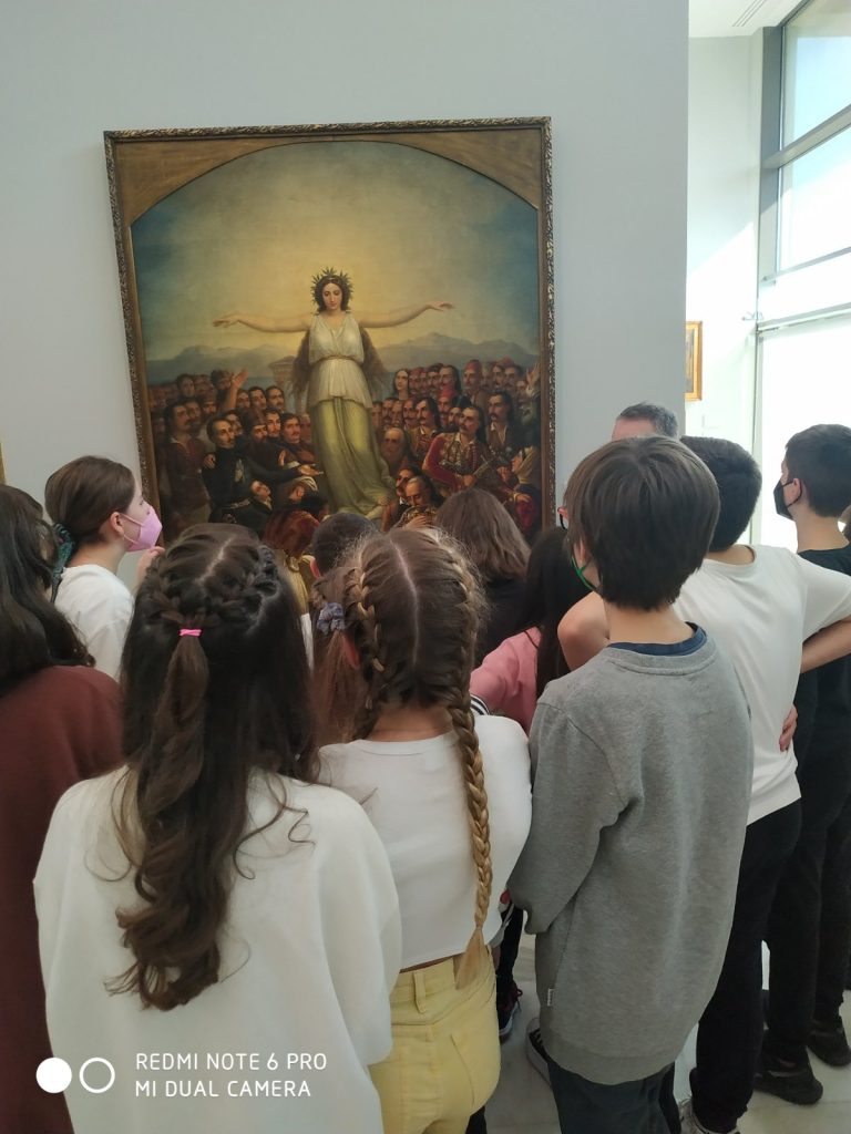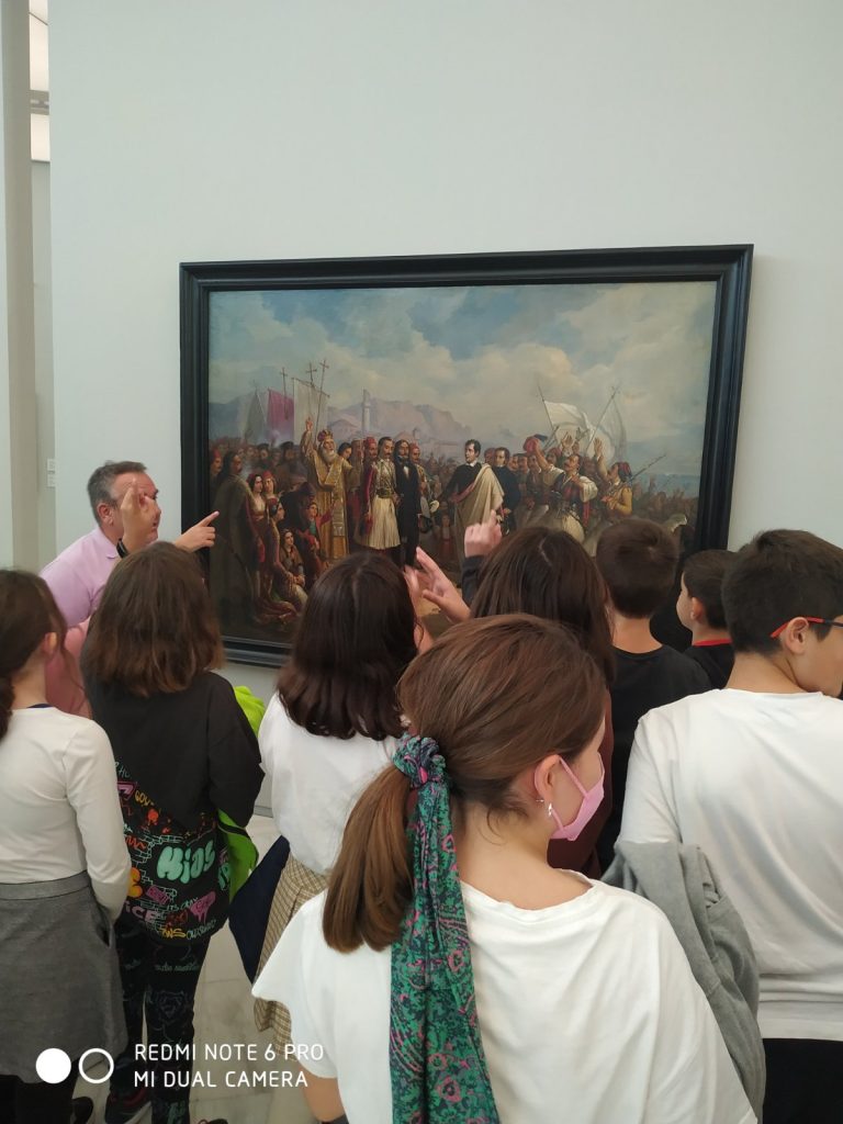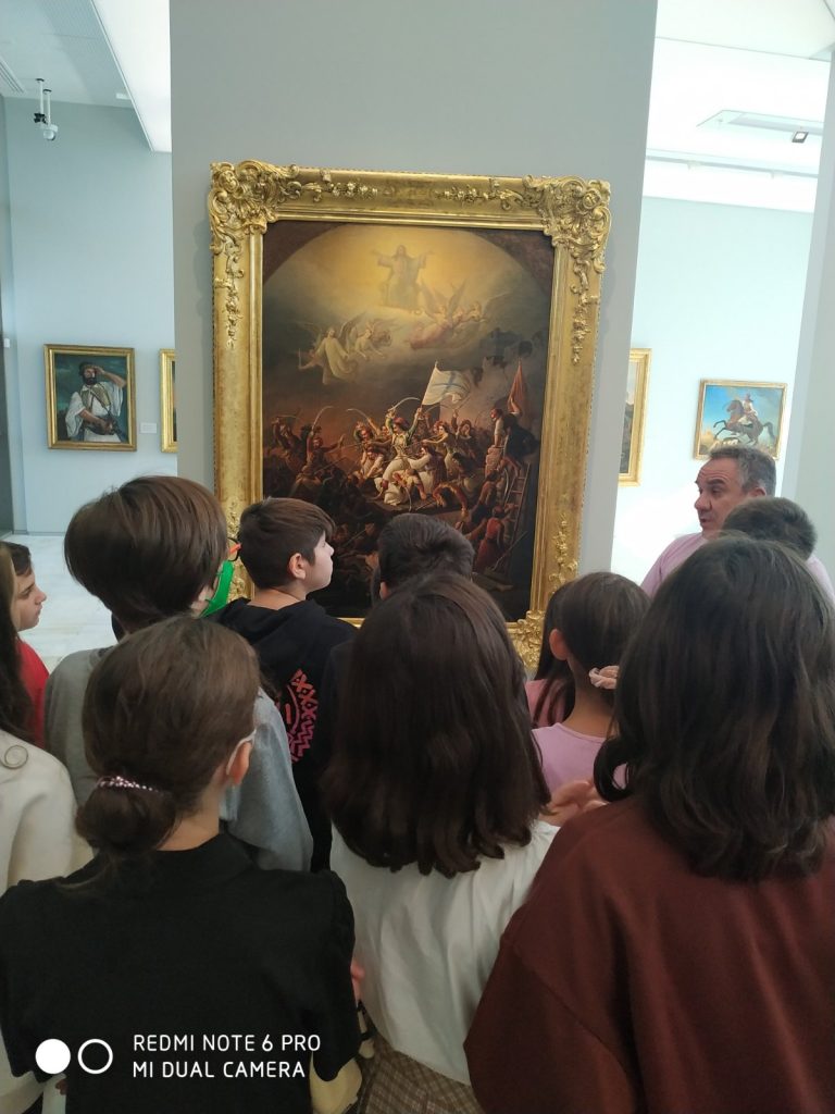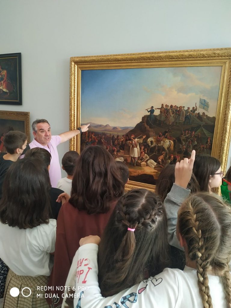 Σήμερα, Τετάρτη 2 Νοεμβρίου 2022, οι μαθητές του Στ2′ επισκεφθήκαμε την Εθνική Πινακοθήκη στην Αθήνα. Από το σχολικό επικρατούσε αγωνιώδες κλίμα. Όταν φθάσαμε θαυμάσαμε το μεγάλο κτήριο και ακούσαμε πολύ ενδιαφέρουσες πληροφορίες γι’ αυτό από τον δάσκαλό μας. Με το πρώτο μας βήμα στην είσοδο μεταφερθήκαμε σε ένα ειδυλλιακό περιβάλλον. Αυτή τη φορά είχαμε την ευκαιρία να θαυμάσουμε πίνακες του Ελ Γκρέκο και του Βρυζάκη, όλοι σχετικοί με την Μεγάλη Επανάσταση. Ο δάσκαλός μας μας εξήγησε το κρυμμένο νόημα και την κάθε λεπτομέρεια των πινάκων. Είδαμε πορτρέτα που έφερναν στην ζωή τους ανθρώπους και τρομερές αναπαραστάσεις. Βγάλαμε φωτογραφίες και περάσαμε τέλεια! Ανυπομονούμε να ξανάρθουμε για να εξερευνήσουμε κι άλλο αυτόν τον κρυμμένο θησαυρό.