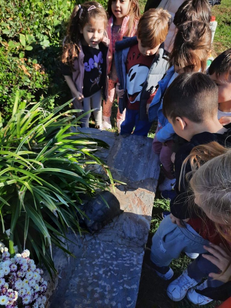 Σήμερα, Δευτέρα 31/10/2022, ο φθινοπωρινός Βοτανικός Κήπος στο Χαϊδάρι μας υποδέχτηκε. Εμείς παρατηρήσαμε τα κίτρινα φύλλα, νιώσαμε τον αέρα να κουνάει τα κλαδιά των δέντρων και θαυμάσαμε θα ολάνθιστα χρυσάνθεμα. Τα φύλλα δέντρα που δε ρίχνουν τα φύλλα τους τον χειμώνα φιλοξενούσαν πολλά πουλιά που ακούσαμε τη φωνή τους. Συναντήσαμε χελωνιτσες, ψαρακια και βατραχακια στην πράσινη εξόρμηση μας. Τέλος φυτέψαμε και το δικό μας λουλουδάκι και με φροντίδα, ήλιο και νερό ανυπομονούμε να το δούμε να ανθίζει. Όμορφη που είναι η φύση το φθινόπωρο!