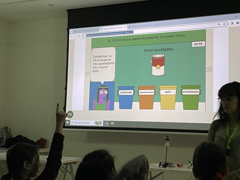 Σήμερα, Τρίτη 13/2/2024, με την τάξη μου επισκεφθήκαμε το Κέντρο πολιτισμού Σταύρος Νιάρχος. Εκεί μας εξήγησαν για τα πλαστικά και τα γυάλινα μπουκάλια και την ανακύκλωση. Μας έδειξαν πώς να φροντίζουμε το περιβάλλον, για να έχουμε μια καλύτερη ζωή. Επίσης, στο εργοστάσιο ανακύκλωσης μάθαμε να ανακυκλώνουμε καπάκια και φτιάξαμε μια σβούρα για να στολίσουμε την τάξη. Σε αυτή την επίσκεψη περάσαμε υπέροχα!