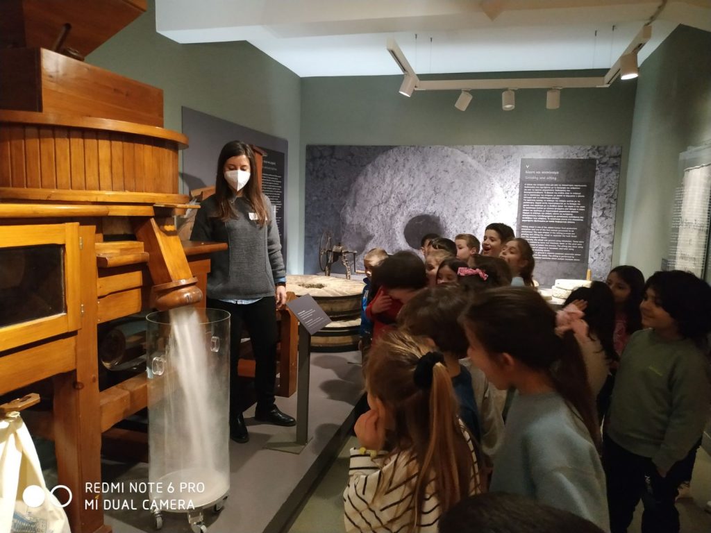 Μας έδειξαν γεωργικά εργαλεία παλαιότερης εποχής και μηχανήματα που χρησιμοποιύνταν για την παρασκευή του αλευριού και μας δόθηκε η ευκαιρία να ζυμώσουμε το ψωμί. Ήταν μια υπέροχη επίσκεψη και μακάρι να την επαναλάβουμε!