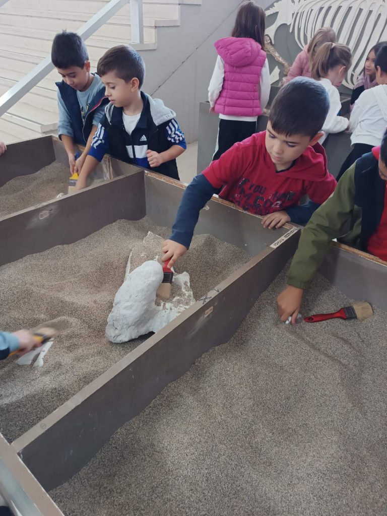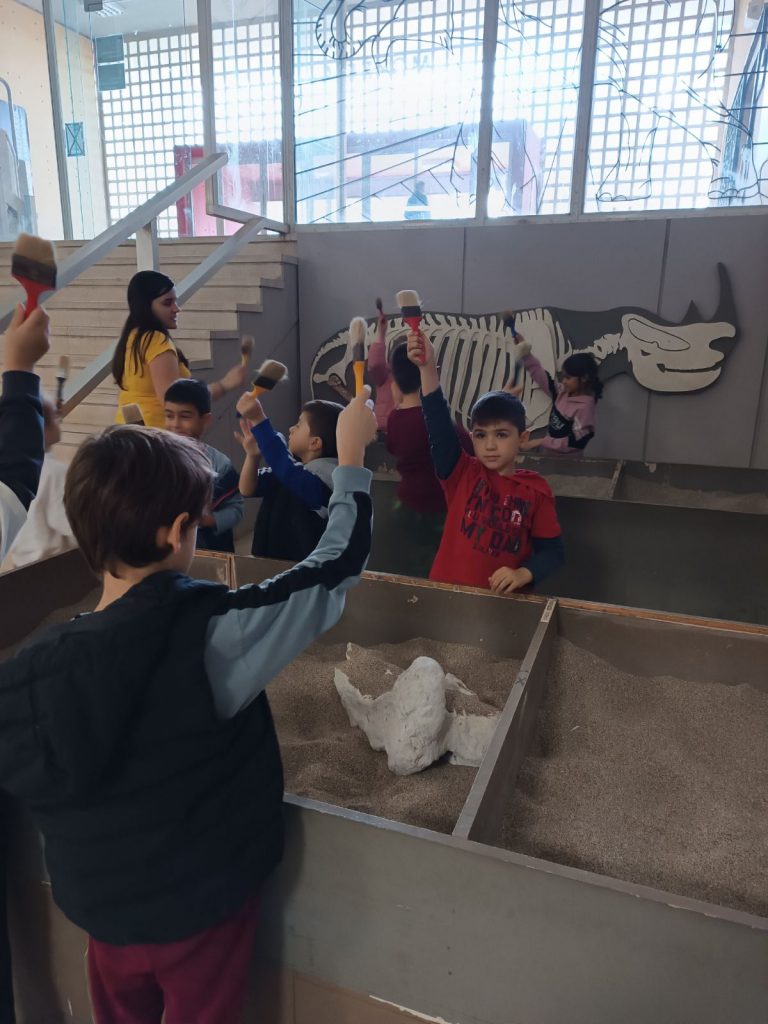 Σήμερα, Τρίτη 18 Νοεμβρίου, πραγματοποιήθηκε μια εκπαιδευτική επίσκεψη στο Μουσείο Παλαιοντολογίας και Γεωολογίας στη Ζωγράφου. Οι μαθητές μας είχαν την ευκαιρία να βιώσουν τον κόσμο των επιστημόνων μέσα από προσομοίωση ανασκαφών με πινέλα και μελέτη πραγματικών ευρημάτων, όπως ο σκελετός μιας καμήλας. Μάθαμε για τους τρόπους απολίθωσης και κάναμε ένα γρήγορο ταξίδι στην Εξέλιξη της Ζωής: από τη δημιουργία του κόσμου (Big Bang) και τα πρώτα ζώα (όπως ο Αμφίουρος και ο Τικταλίκ) στους δεινόσαυρους και το πρώτο πουλί, την Αρχαιοπτέρυγα. Συζητήσαμε επίσης για τα θηλαστικά, με ιδιαίτερη έμφαση στην ιστορία του αλόγου, και γνωρίσαμε τα παλαιοντολογικά ευρήματα της Ελλάδας, όπως οι γιγάντιες χελώνες και οι ελέφαντες. Ήταν μια εξαιρετικά ενδιαφέρουσα και διδακτική εμπειρία για όλους!
