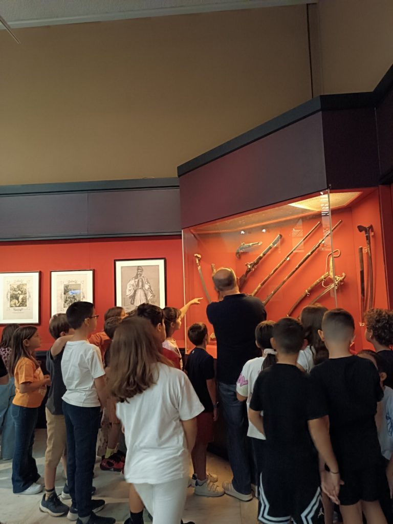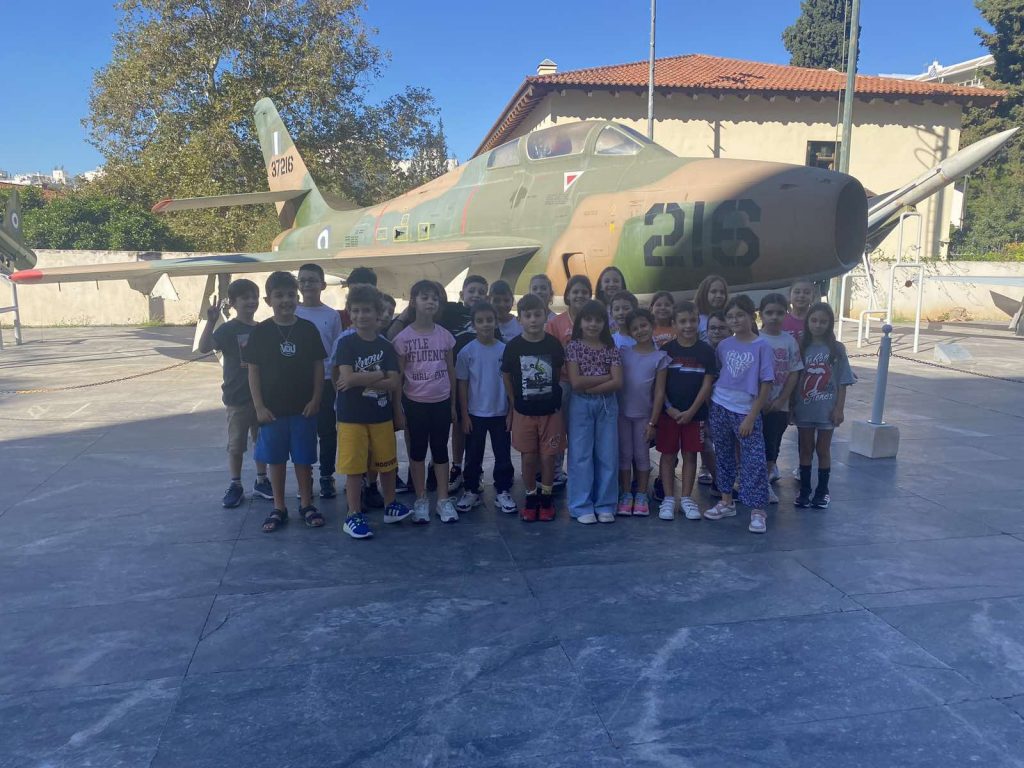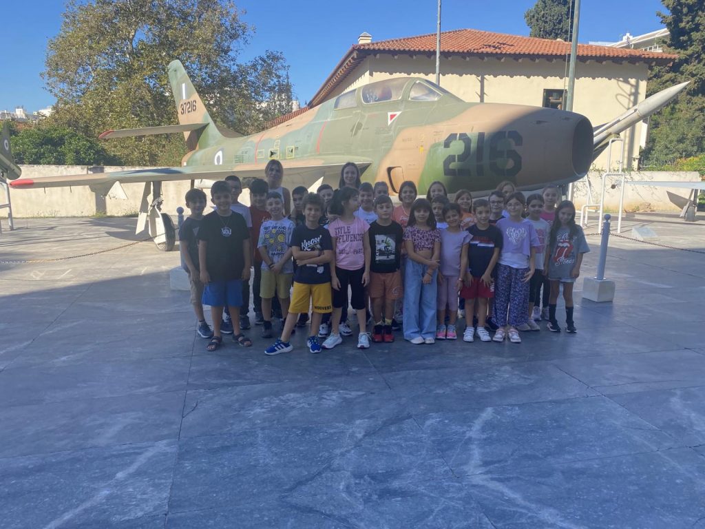 Σήμερα Τρίτη 8 Οκτωβρίου 2024, πήγαμε στο Πολεμικό Μουσείο στην Αθήνα. Εκεί μας ξενάγησαν και μας έδειξαν τα σπαθιά και τα όπλα με τα οποία πολεμούσανε οι Έλληνες σε πολέμους τα παλιότερα χρόνια. Μας έδειξαν ένα πολεμικό βίντεο με μια ναυμαχία. Τέλος, βγάλαμε μια αναμνηστική φωτογραφία μπροστά από ένα πολεμικό αεροπλάνο για να μην ξεχάσουμε ποτέ αυτήν την επίσκεψη!