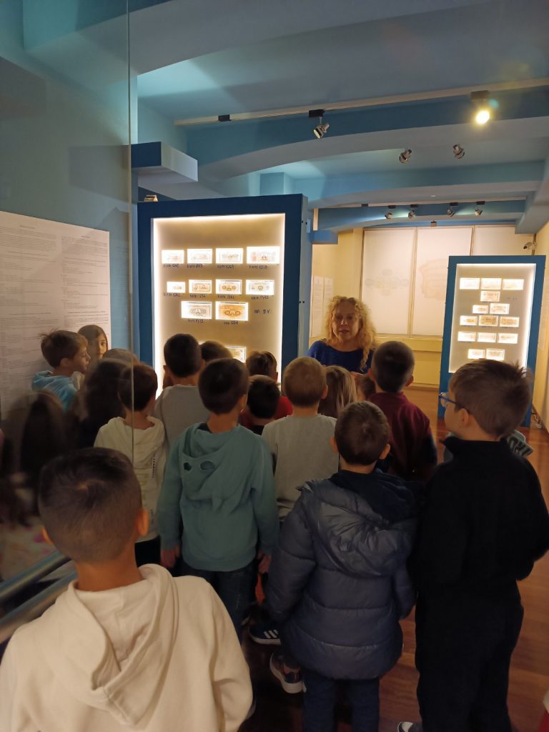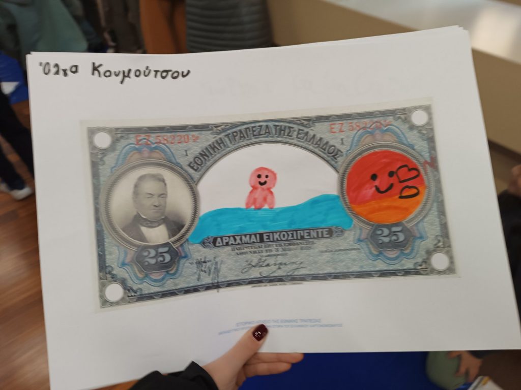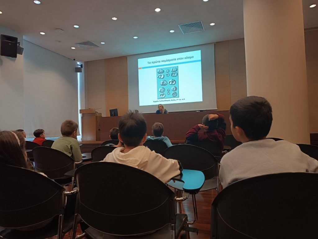 Η επίσκεψή μας, σήμερα Τρίτη 2/12/2025, στο Ιστορικό Αρχείο της Εθνικής Τράπεζας ήταν μια μοναδική εμπειρία. Εκεί, επισκεφθήκαμε μια μεγάλη αίθουσα όπου είδαμε θεωρητικά θέματα σχετικά με το αρχείο που τηρείται και μάθαμε για το εργαστήριο συντήρησης, τι κρατούν και τι απορρίπτουν. Μας διηγήθηκαν πολλές ενδιαφέρουσες ιστορίες, τόσο για τα μηχανήματα όσο και για τα χρηματοκιβώτια. Κάναμε μια αναδρομή στην ιστορία του χρήματος, είδαμε παλιά και νέα νομίσματα, ενώ το πιο διασκεδαστικό ήταν που φτιάξαμε και δικά μας χαρτονομίσματα. Στο τέλος της επίσκεψης, μας πρόσφεραν πορτοκαλάδα, ένα μπισκοτάκι και ένα κόμικ.