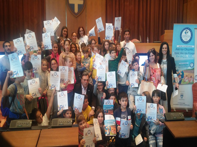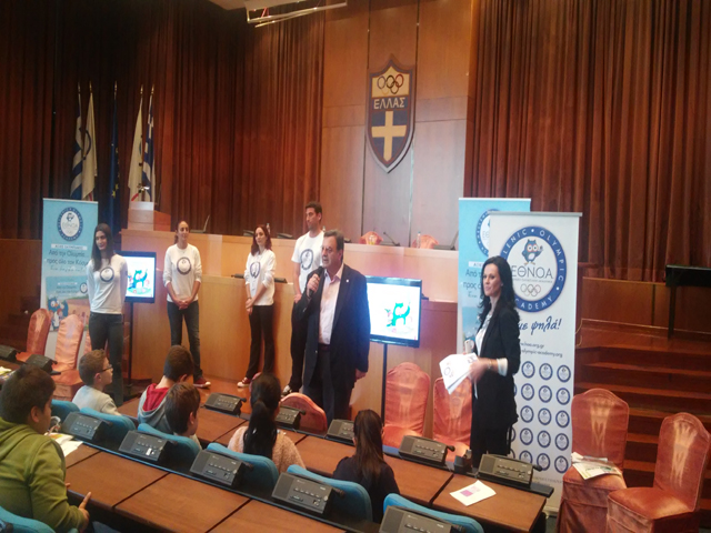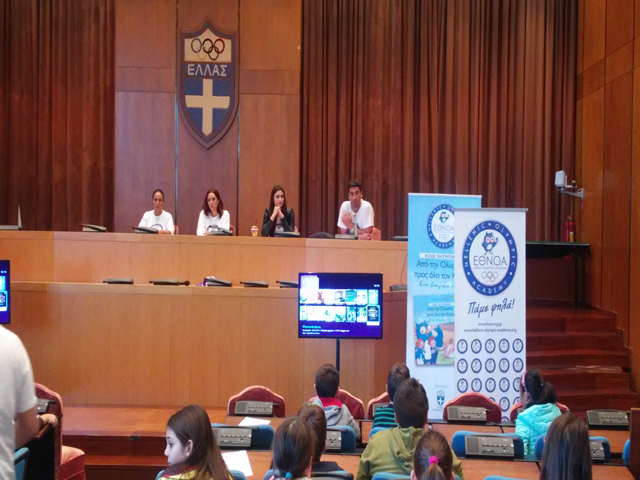 Σήμερα , Παρασκευή 20 Νοεμβρίου 2015, η Ε’ τάξη επισκέφθηκε την Εθνική Ολυμπιακή Ακαδημία. Ήταν μια φανταστική επίσκεψη . Ξεκινήσαμε το πρωί και όταν φτάσαμε  μας υποδέχτηκαν τέσσερις σπουδαίοι Ολυμπιονίκες. Ανεβήκαμε έπειτα στον 5ο όροφο του κτιρίου. Εκεί βγάλαμε πολλές φωτογραφίες και μιλήσαμε για τον αθλητισμό . Αφού κατεβήκαμε στο 2ο όροφο μπήκαμε σε ένα αμφιθέατρο όπου ενημερωθήκαμε για την ιστορία των Ολυμπιακών Αγώνων ,για το νόημα των Ολυμπιακών Κύκλων, κ.ά. Τέλος , παίξαμε πολλά παιχνίδια και έπειτα από ένα σύντομο διάλειμμα ήρθε ο πρόεδρος της Ολυμπιακής Ακαδημίας και μας χαιρέτησε. Πήραμε τα διπλώματά μας και φύγαμε . Ήταν μία τέλεια επίσκεψη!!!