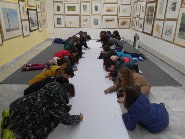 Περιηγηθήκαμε στους χώρους της πινακοθήκης και “ταξιδέψαμε“ στα παλαιότερα χρόνια μάθαμε για τις διάφορες τεχνοτροπίες των ζωγράφων και τέλος … δημιουργήσαμε έναν ομαδικό πίνακα ανά τμήμα.