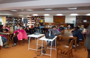 Σήμερα επισκεφθήκαμε τη βιβλιοθήκη της Ελληνοαμερικάνικης ένωσης. Η ελληνοαμερικάνικη ένωση είναι ένα μεγάλο κτίριο με πολλούς ορόφους. Εκεί τα παιδιά και οι μεγάλοι πάνε για να δανειστούν βιβλία ή να κάνουν μαθήματα. Εμείς αφού ανεβήκαμε πολλές σκάλες φτάσαμε στη βιβλιοθήκη, μια αίθουσα με πολλά ράφια και χιλιάδες βιβλία.