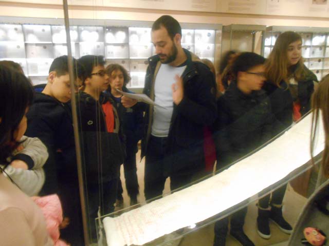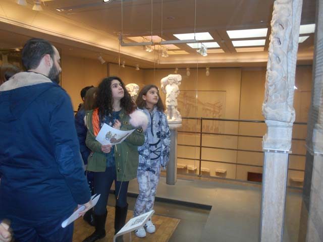Η ξενάγησή μας άρχισε από τον πρώτο όροφο του κτιρίου με τον Βυζαντινό χάρτη ανά εποχή. Έπειτα, αντικρίσαμε “τα πλούτη“ της Παλαιάς εποχής μέσα από τοιχογραφίες Βυζαντινών αυτοκρατόρων. Συνεχίζοντας και στον τελευταίο προορισμός της ξενάγησης στο ισόγειο, όπου θαυμάσαμε νομίσματα που έχουν διατηρηθεί στο χρόνο. Επίσης είχαμε την ευκαιρία να δούμε από κοντά τις ενδυμασίες των παιδιών και των ενηλίκων αλλά και αρχαίους Βυζαντινούς τάφους. Τελειώνοντας, θαυμάσαμε την τέχνη των Βυζαντινών μέσα από ψηφιδωτά και διάφορα έργα τέχνης. Μάλιστα, διαπιστώσαμε και τη σημασία του Χριστιανισμού για την ενότητα της αυτοκρατορίας μέσα από πολλές εικόνες και αναπαραστάσεις. Ήταν μια πραγματικά πολύ ενδιαφέρουσα επίσκεψη και περάσαμε υπέροχα!