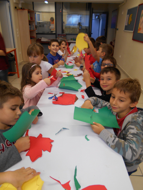 Σχεδιάσαμε , κόψαμε και κολλήσαμε φθινοπωρινά φύλλα για να διακοσμήσουμε την τάξη μας! Μας άρεσε πολύ!