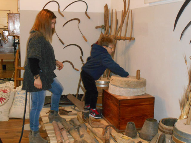Πρώτα – πρώτα παρατηρήσαμε μέσα στις προθήκες του μουσείου τις σφραγίδες που χρησιμοποιούσαν οι νοικοκυρές όταν έφτιαχναν το πρόσφορο. Έπειτα είδαμε τη συλλογή με τα γεωργικά εργαλεία που χρησιμοποιούσαν οι άνθρωποι στο θερισμό. Αμέσως μετά πλύναμε τα χέρια μας και ξεκινήσαμε το ζύμωμα των δικών μας ψωμιών. Όση ώρα χρειάστηκε για να ψηθούν τα ψωμάκια μας, παίξα,ε ένα παιχνίδι και φτιάξαμε την “πυραμίδα της διατροφής“. Φεύγοντας μας έδωσαν αναμνηστικά αναμνηστικά, δωράκια και φυσικά τα ζεστά και μοσχομυριστά ψωμάκια μας. Περάσαμε φανταστικά!!!