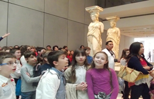τα μαρτυρούσε μια κόκκινη πινακίδα. Εκεί κοντά βρίσκονταν οι Καρυάτιδες , από τις οποίες η μία συντηρούνταν εκείνη την ώρα. Βέβαια, η πιο φανταστική αίθουσα ήταν στον τρίτο όροφο με τα αετώματα, τις μετώπες και τη ζωοφόρο. Εντύπωση μάς έκανε ότι στη θέση των Ελγινείων μαρμάρων βρίσκονταν πιστά τους αντίγραφα. Ήταν μια φανταστική εμπειρία!