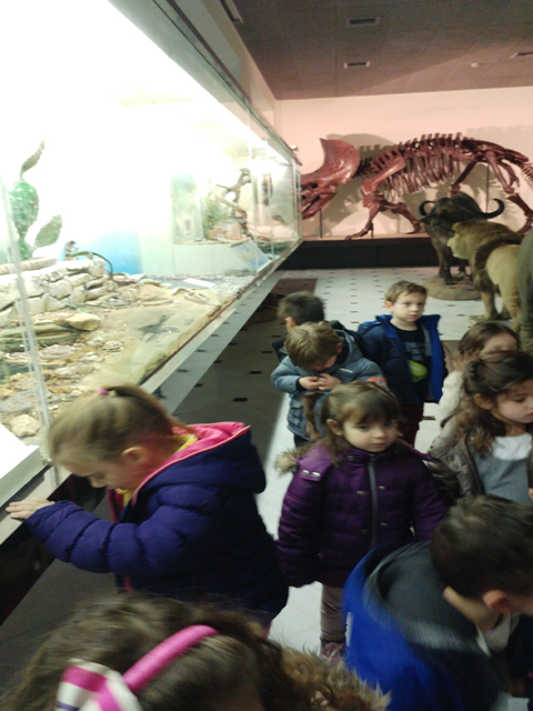Ξεκίνησαν από το Γεωλογικό τμήμα , όπου παρατήρησαν πετρώματα και απολιθώματα ζώων και φυτών. Στη συνέχεια, είχαν την ευκαιρία να δούνε το εντυπωσιακό Ζωολογικό τμήμα και να παρατηρήσουν από κοντά μια πληθώρα βαλσαμωμένων ζώων, καθώς και ένα σκελετό δεινόσαυρου. Τέλος, γνώρισαν από κοντά ζώα του παρελθόντος, αλλά και ζώα που απειλούνται με εξαφάνιση.