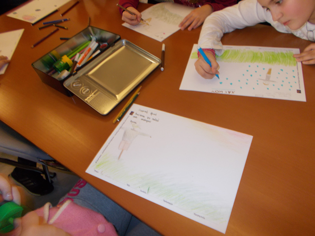 Εκεί, καθίσαμε σε μια μεγάλη αίθουσα όπου μας υποδέχτηκε μια κυρία και μας έδειξε διάφορα ποιήματα από την Ιαπωνία τα οποία λέγονταν Χαϊκού. Σε κάθε ποίημα έπρεπε να βρούμε μια ιστορία και να την παρουσιάσουμε στους συμμαθητές μας. Στο τέλος, είχαμε την ευκαιρία να ζωγραφίσουμε μία εικόνα σχετική με τα ποιήματα. Περάσαμε πάρα πολύ ωραία!!!