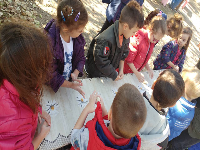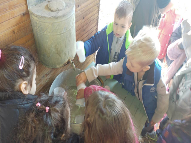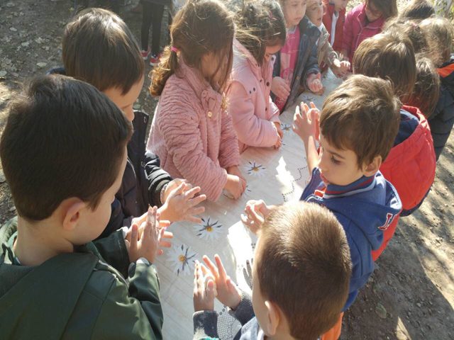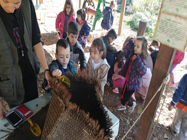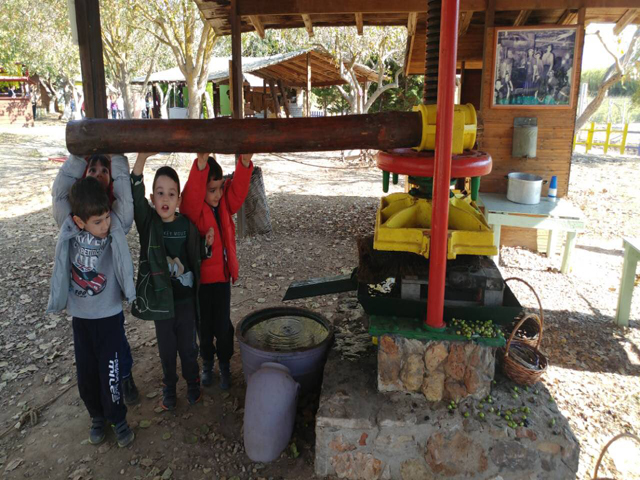 Τα παιδιά συμμετείχαν στο λιομάζωμα στον ελαιώνα και έπειτα είδαν ένα παλιό ελαιοτριβείο. Μάζεψαν ελιές, έφτιαξαν λάδι και ζύμωσαν ελιόψωμα. Ήταν μια αξέχαστη εμπειρία.