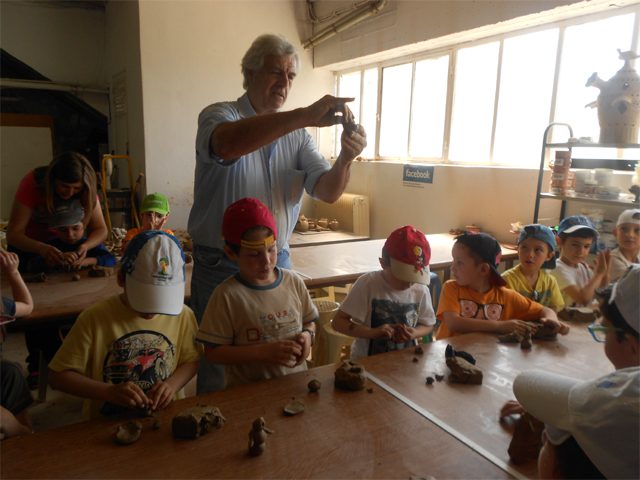 Έπειτα παρακολουθήσαμε πως κατασκευάζονται τα κεραμικά στον τροχό του αγγειοπλάστη, ενώ δημιουργήσαμε και τις δικές μας πήλινες κατασκευές. Λίγο πριν την αναχώρηση, το πρόγραμμα περιελάμβανε καρουζέλ, τρενάκι και ποδηλατοδρομίες.