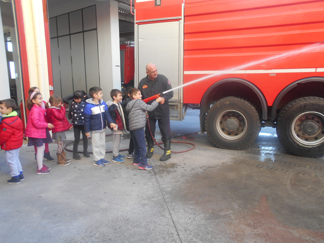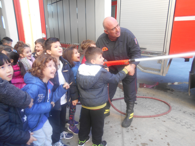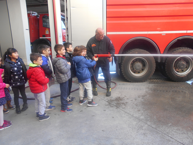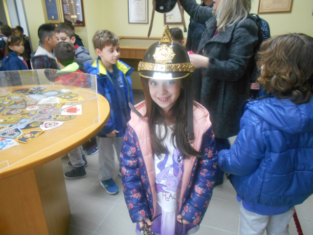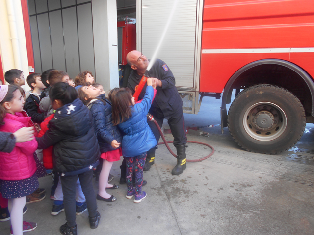 Όταν φτάσαμε εκεί μας υποδέχτηκε θερμά ένας πυροσβέστης, ο οποίος πριν μας ξεναγήσει στους χώρους του μουσείου, μας ενημέρωσε για τις δυσκολίες του επαγγέλματός του αλλά και για το τι πρέπει να κάνουμε σε περίπτωση πυρκαγιάς. Φυσικά μας έμαθε και τον αριθμό που πρέπει να καλούμε σε περίπτωση πυρκαγιάς (199). Η καλύτερη στιγμή όμως ήταν όταν μπήκαμε για λίγο στη θέση του πυροσβέστη φορώντας κράνος και όταν χρησιμοποιήσαμε τη μάνικα για να σβήσουμε μια φωτιά. Περάσαμε πολύ όμορφα και φύγαμε από εκεί γεμάτοι γνώσεις για το δύσκολο επάγγελμα του πυροσβέστη αλλά και την πρόληψη των πυρκαγιών.