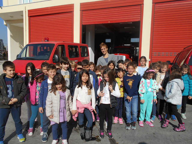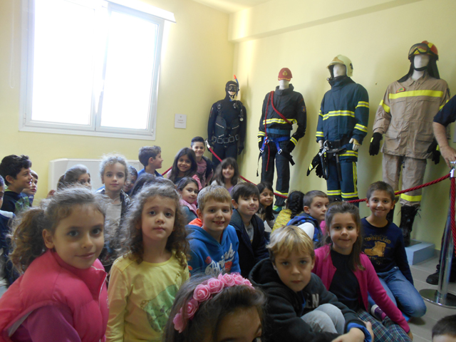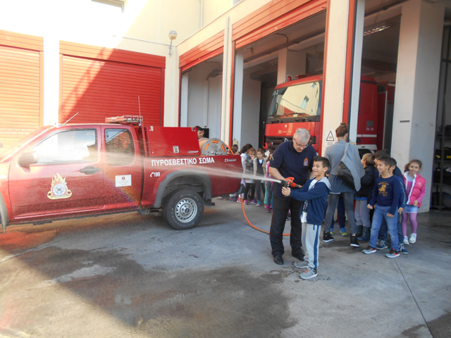 Είδαμε ένα βίντεο που έδειχνε να σώζουν ανθρώπους μέσα από τις πυρκαγιές, τις πλημμύρες και τα χαλάσματα των σπιτιών έπειτα από σεισμό. Επίσης μας έδειξαν τις στολές των πυροσβεστών και ρίξαμε με τη μάνικα νερό σε υποτιθέμενη πυρκαγιά. Ήταν τέλεια και διασκεδάσαμε πολύ!!!