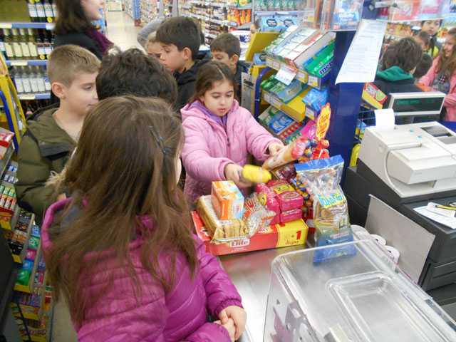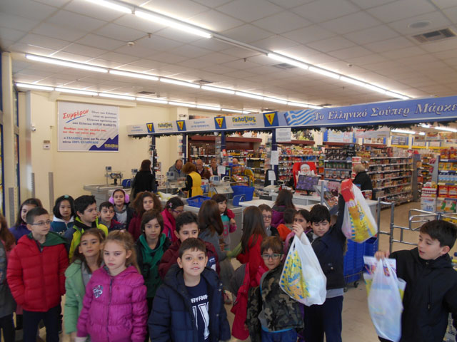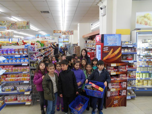 Εκεί είχαμε την ευκαιρία, στα πλαίσια του Διδακτικού Σεναρίου “Δαιτροφή” , να γίνουμε “μικροί“ καταναλωτές και να αγοράσουμε τρόφιμα, με όσα χρήματα είχαμε συγκεντρώσει! Όλες οι επιλογές μας ήταν στα πλαίσια της υγιεινής διατροφής και όσα τρόφιμα συγκεντρωθούν θα δοθουν σε άπορες οικογένειες εν όψει των Χριστουγέννων, που τόσο πολύ τα έχουν ανάγκη. Ήταν μια πολύ ενδιαφέρουσα δραστηριότητα! Όλοι την ευχαριστηθήκαμε!!!