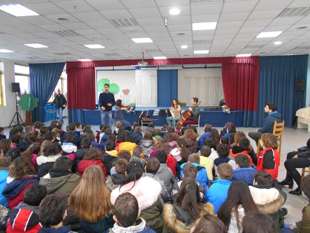 Μέσα από το εκπαιδευτικό και διαδραστικό πρόγραμμά τους, μας έμαθαν για τα μουσικά όργανα, βιολί, βιόλα, βιολοντσέλο αλλά και για τους ήχους τους. Ακόμη, μας έπαιξαν γνωστές μελωδίες και μας μίλησαν για πολλούς διάσημους συνθέτες και την ιστορία τους. Ήταν μια ευχάριστη εμπειρία για όλους μας και προσμένουμε άλλη μια ευκαιρία για να τους ακούσουμε!