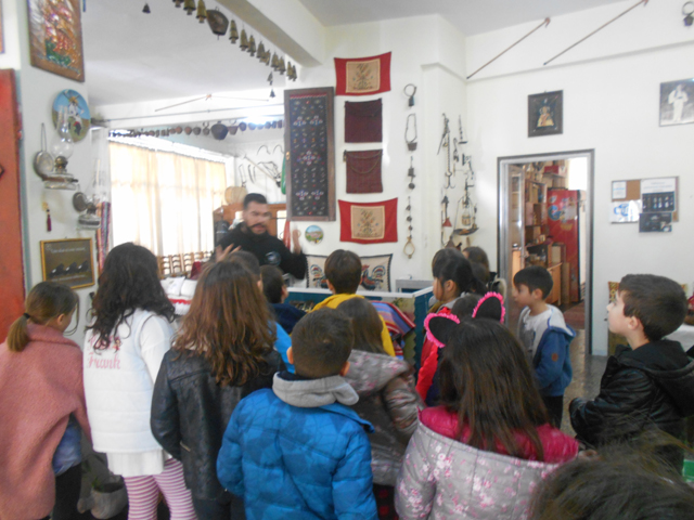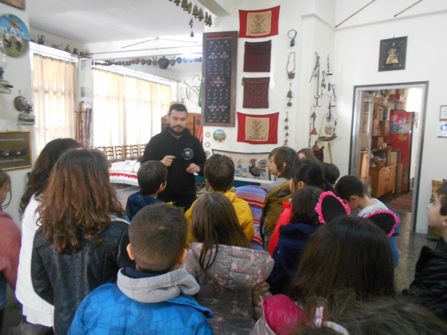 Μόλις μπήκαμε στο χώρο εντυπωσιαστήκαμε από τα όμορφα εκθέματά του και αμέσως ταξιδέψαμε σε μια μακρινή εποχή. Εκεί μας υποδέχτηκε ένας πολύ ευγενικός κύριος, ο Γιώργος Κότσαλος, ο οποίος μας μίλησε για το χορό και την ιστορία του. Μάθαμε πολλές λεπτομέρειες για τους παραδοσιακούς χορούς, τις οποίες μέχρι τώρα αγνοούσαμε όπως από πού παίρνουν τα ονόματά τους, πώς διαφέρει το πιάσιμο των χορευτών από χορό σε χορό κ.α. Γεμάτοι όμορφες εντυπώσεις και μοναδικές εικόνες τον αποχαιρετήσαμε, πήραμε το κέρασμά μας και επιστρέψαμε στο σχολείο μας! Τον ευχαριστούμε πολύ για όλα!