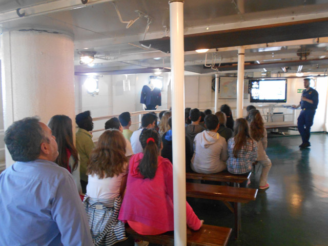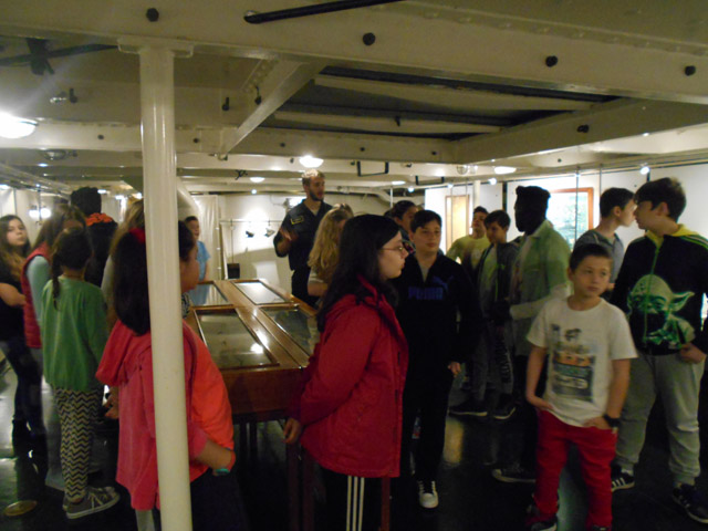 Σήμερα, Τρίτη 12 Απριλίου 2016, επισκεφθήκαμε το θωρηκτό “ΑΒΕΡΩΦ“ που στις μέρες μας λειτουργεί ως πλωτό μουσείο. Μόλις φτάσαμε εκεί ένας κύριος μάς καλωσόρισε και έπειτα μάς ξενάγησε στους χώρους.