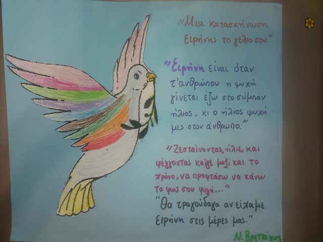 Πιο συγκεκριμένα ασχοληθήκαμε με τη ζωή και το έργο του σπουδαίου αυτού Έλληνα ποιητή, πεζογράφου , μεταφραστή και δοκιμιογράφου. Εστιάζοντας στην ωριμότερη περίοδο της ποίησής του , ασχοληθήκαμε με την ερμηνεία ποικίλων ποιημάτων στα οποία κυριαρχούν οι έννοιες “φως, φύση , αγάπη, αγνότητα, ειρήνη “. Επιπλέον , τραγουδήσαμε και δραματοποιήσαμε μελοποιημένα ποιήματά του ενώ αποδώσαμε το έργο του με πλήθος εικαστικών παρεμβάσεων (ζωγραφιές , κατασκευές , κ.α.)