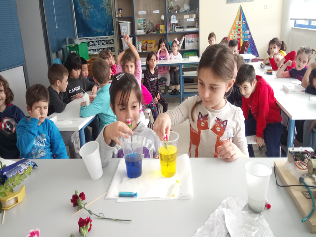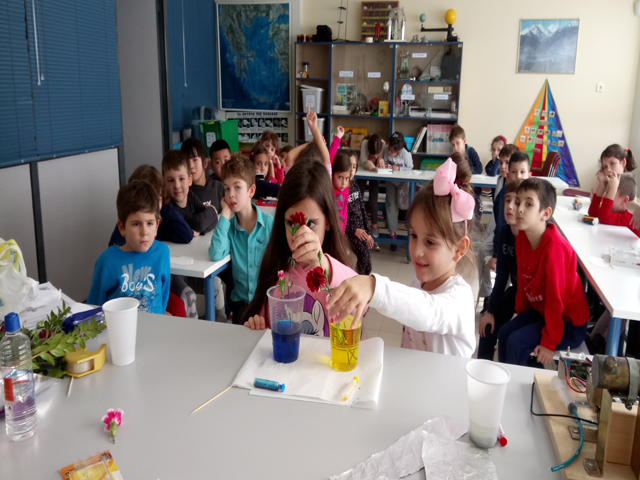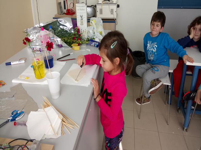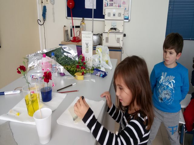 Με απλά υλικά και μεγάλο ενθουσιασμό παρακολουθήσαμε πώς μπορεί να αλλάξει το χρώμα στα πέταλα ενός λουλουδιού αλλά και ανακαλύψαμε ποια χρώματα συνθέτουν κάθε χρώμα. Περάσαμε υπέροχα και είμαστε έτοιμοι να πειραματιστούμε σε νέες καταστάσεις…