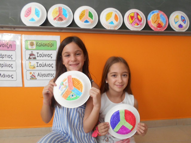 Αρχικά, αναλογιστήκαμε τα οφέλη της ειρήνης και τα δεινά του πολέμου. Κατόπιν παρακολουθήσαμε μια ταινία μικρού μήκους με σχετικό θέμα και τέλος η δράση μας συνεχίστηκε στο χώρο του εργαστηρίου, όπου φτιάξαμε με απλά υλικά το σήμα της ειρήνης. Περάσαμε υπέροχα και μάθαμε να εκτιμάμε το υπέρτατο αυτό αγαθό.