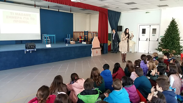 Σήμερα, Δευτέρα 3 Δεκεμβρίου 2018, η εβδομάδα μας ξεκίνησε με την επίσκεψη της κυρίας Βασιλικής Παπαϊωάννου, που είναι διαιτολόγος – διατροφολόγος. Μας επισκέφθηκε στα πλαίσια του Διδακτικού σεναρίου με θέμα τη “Διατροφή”, που πραγματοποιούμε την τρέχουσα εβδομάδα.